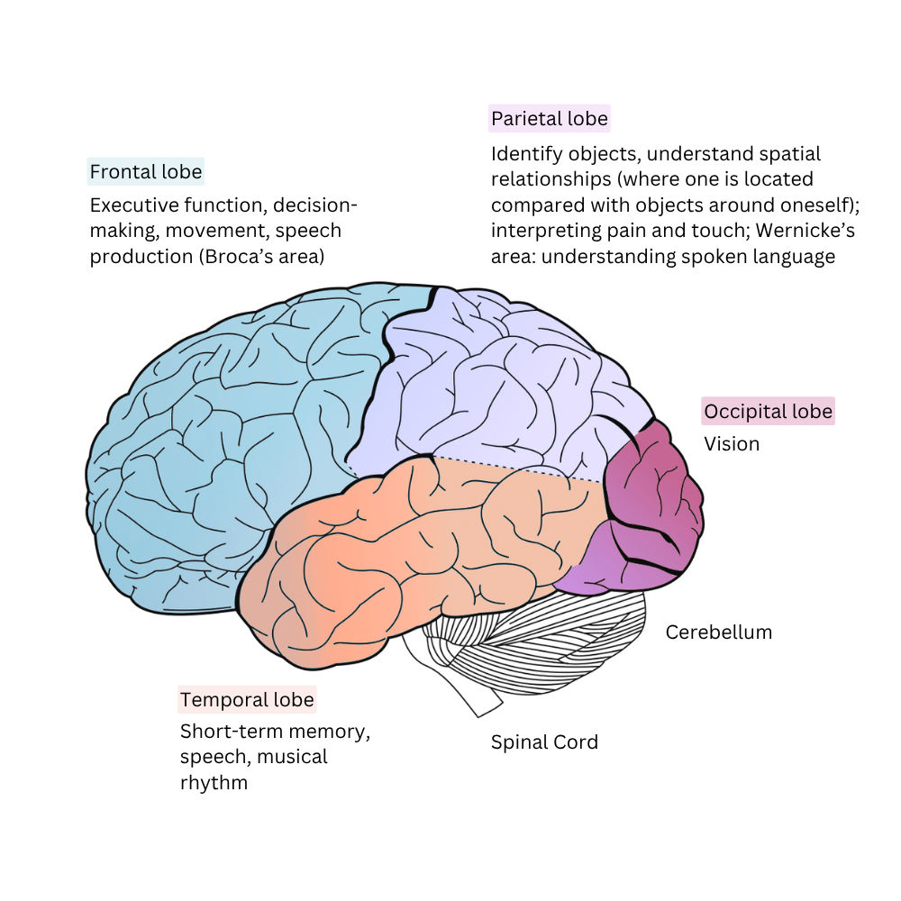 First of all, let's look quickly how the brain works, and which area are often connected to what.