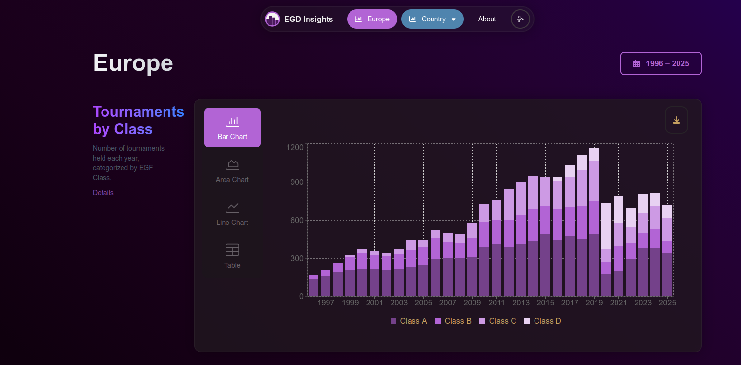 *truth be told, it could also be described as "the EGD stats website you've always dreamed of", but that's kind of a spoiler, or more officially as per Matt himself "EGD Insights provides visualisations of data from Go tournaments run in Europe—specifically based on data from the European Go Database (EGD)", but that's definitely less catchy, right.