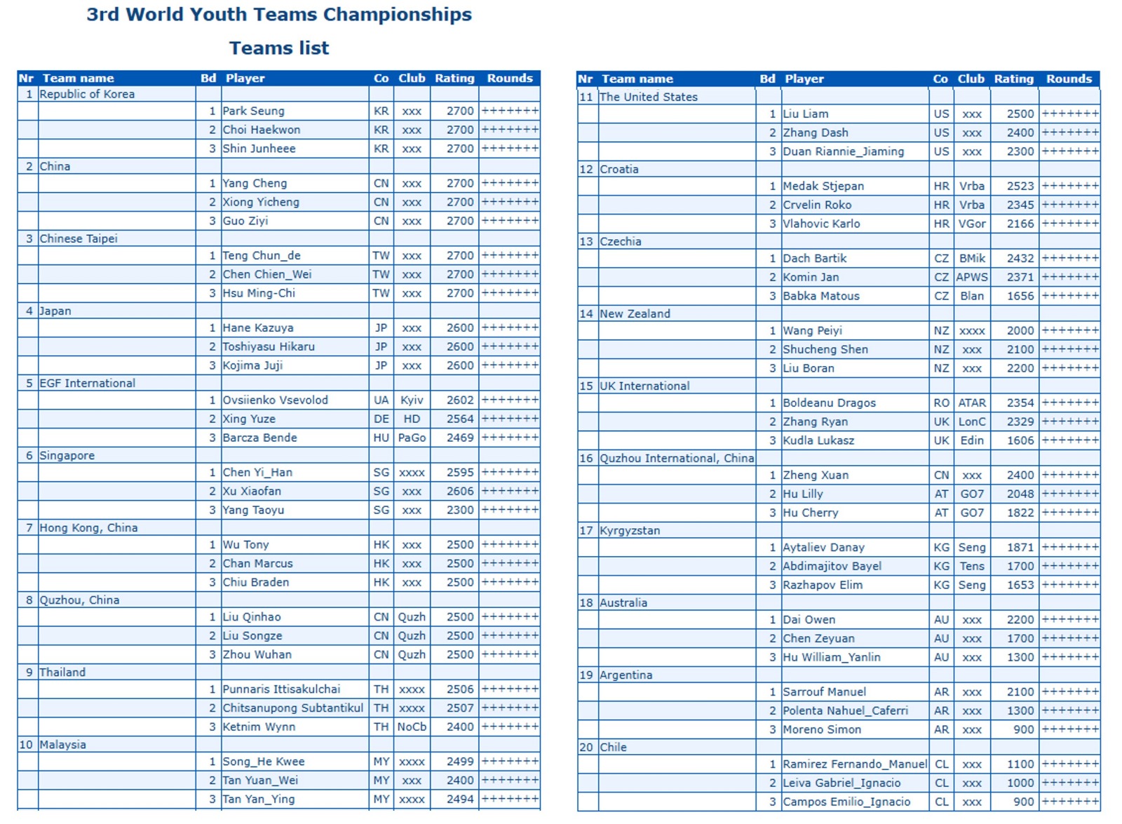 It should be noted that Croatia and U.K. qualified through the 2nd Pandanet Youth Go European Team Championship (two top teams in the League A who did not participate in the previous world team event).