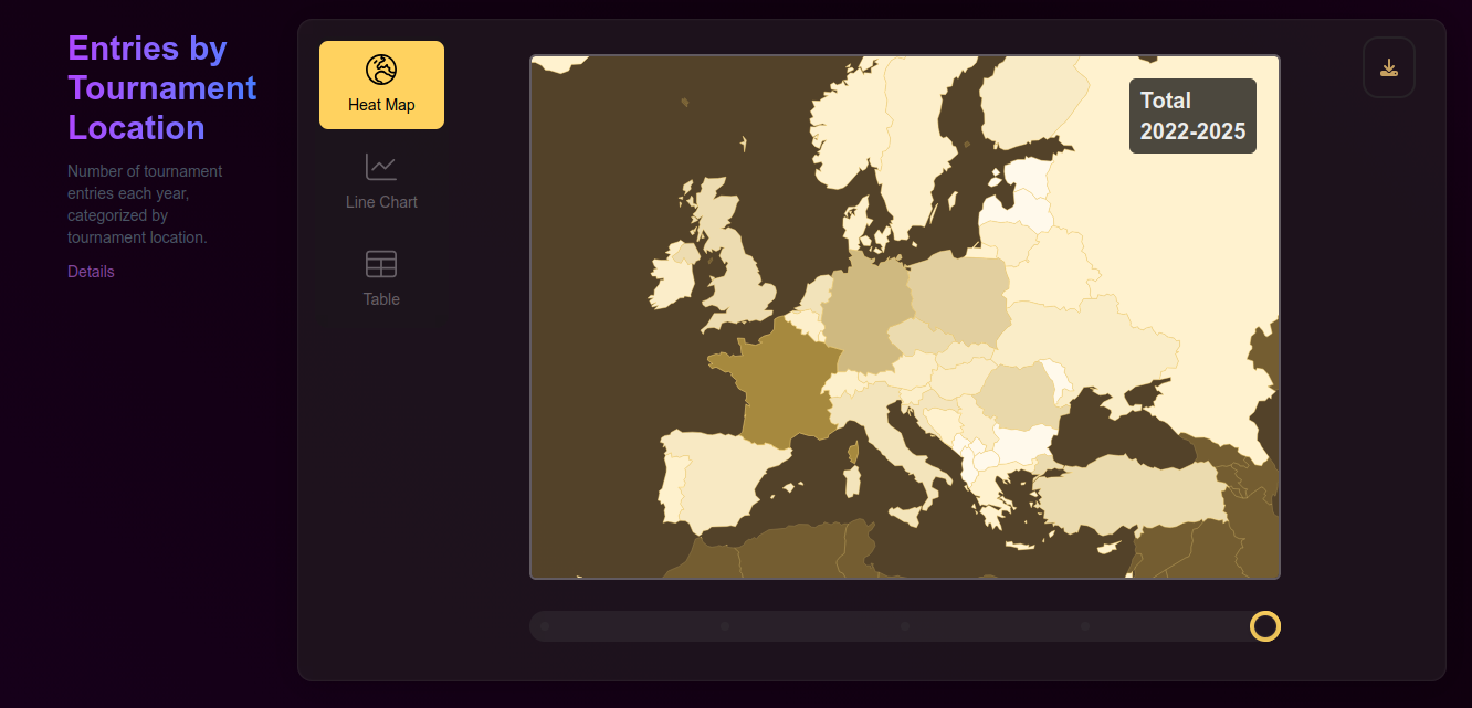 There are some small changes which could also help with analysing the data. For example, it might be helpful to allow filtering out of the major European tournaments (like the EGC etc.), since these have a massive impact in each country when they happen—which in turn can obscure overall trends.